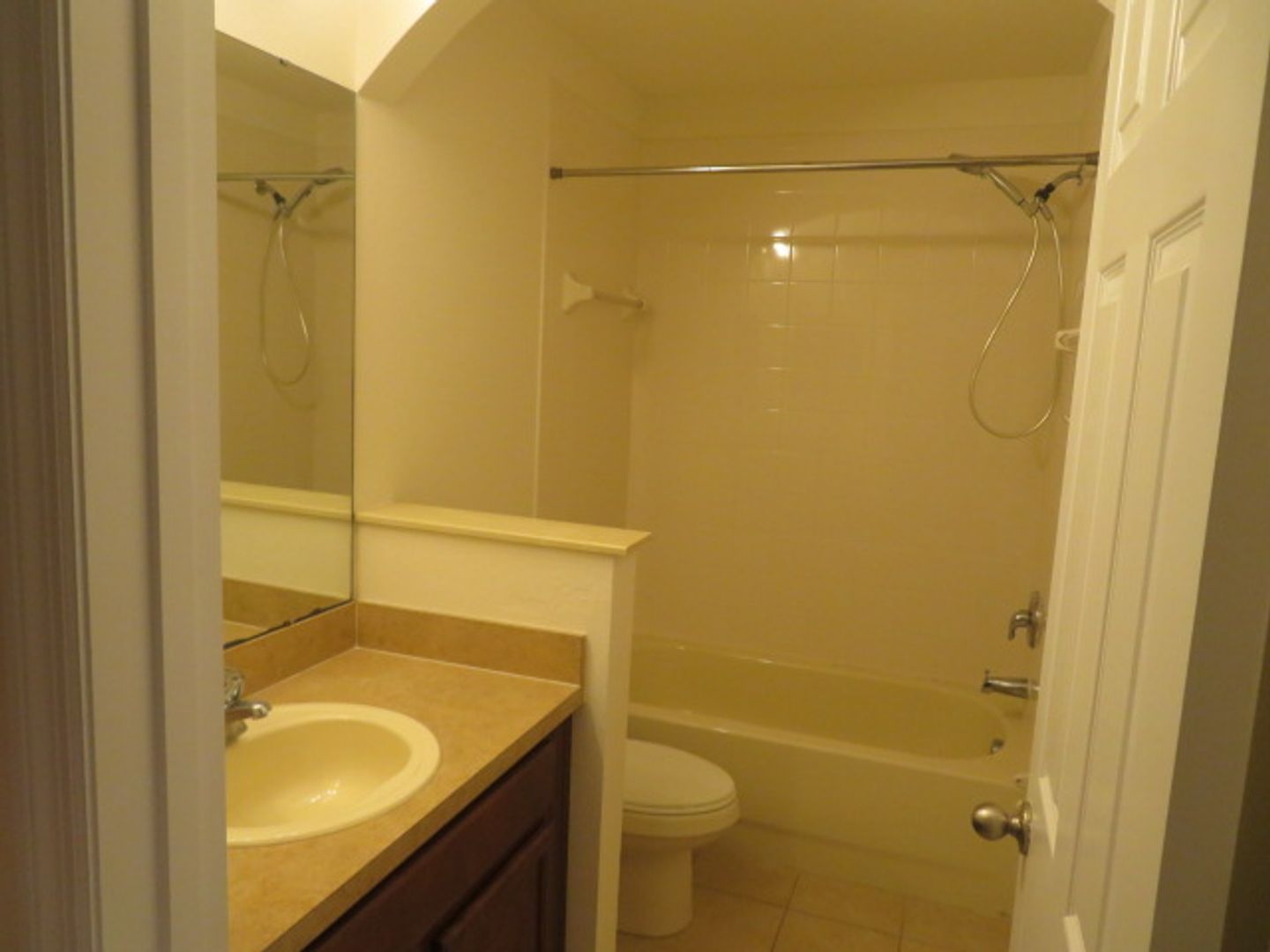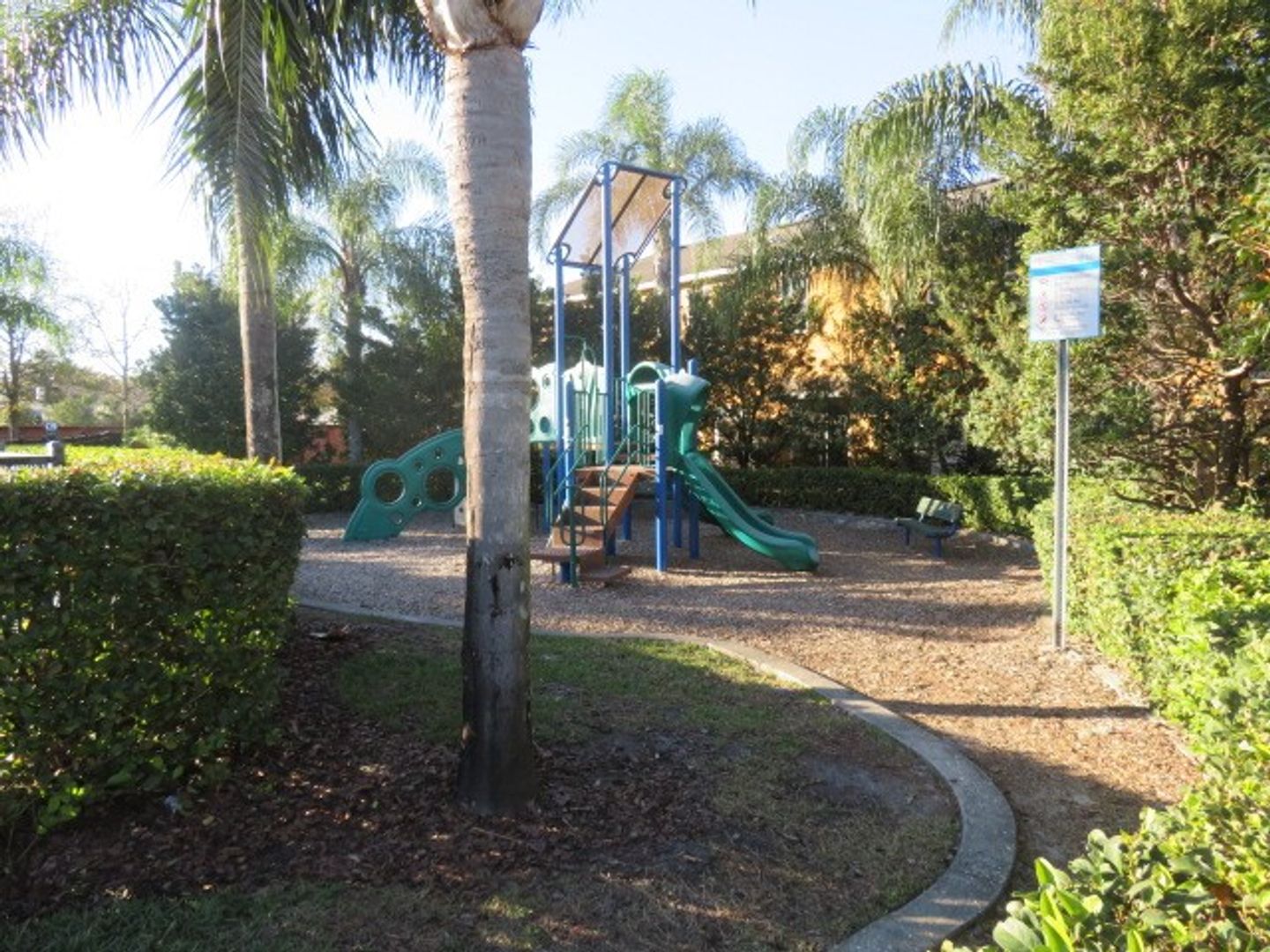 Gated community Townhouse. Dark kitchen cabinets with open area for kitchen table. Front driveway parking space and 1 car garage.Winter Springs location! Close to restaurants and amenities. Community has a pool and playground area.. Very clean and well taken care of. All bedrooms are upstairs, one half bathroom is downstairs. Master has a large bathroom with separate tub and stand up shower.