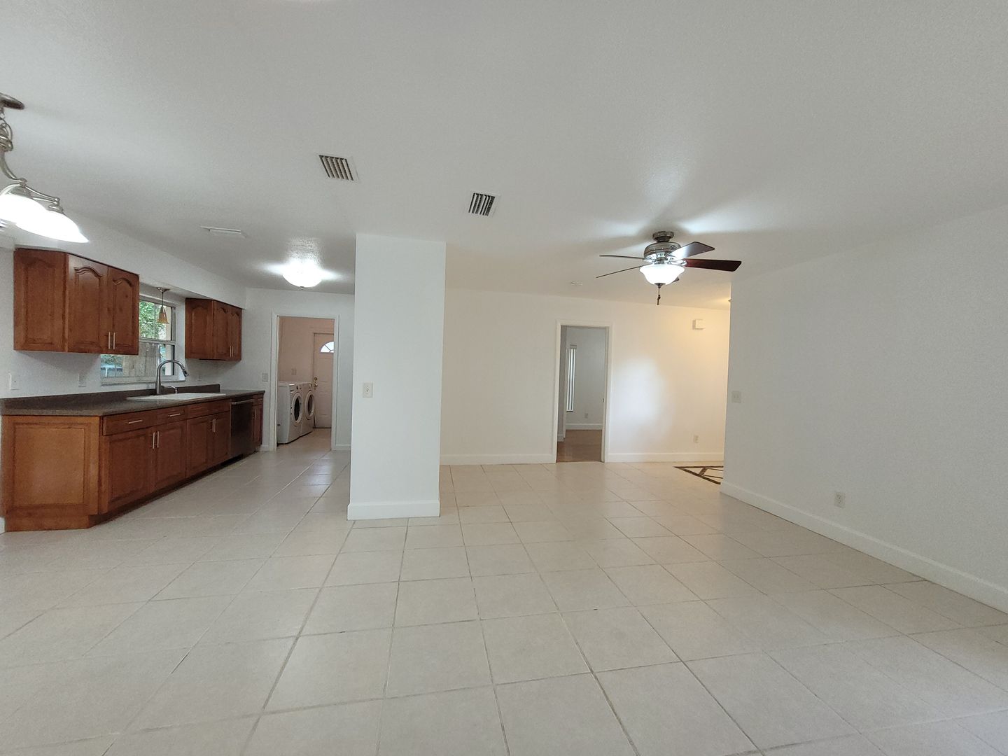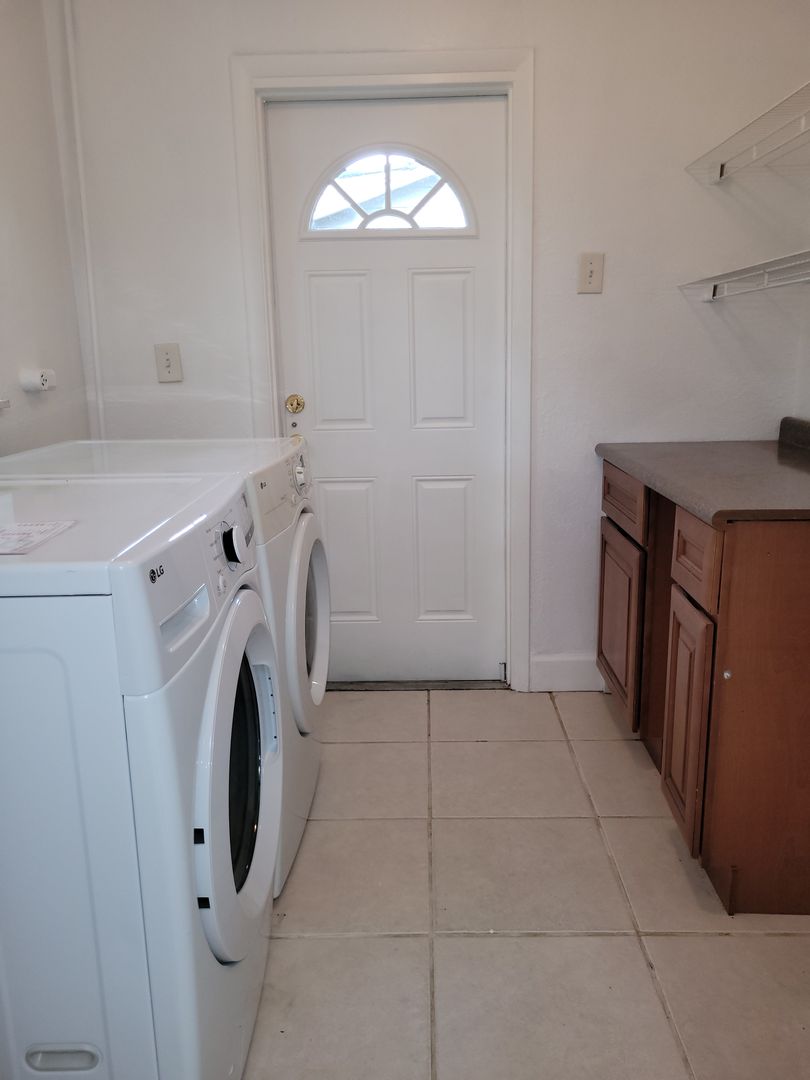Featuring 3 bedrooms and 2 bathrooms, with spacious kitchen, inside laundry including full size washer and dryer. Front covered entry porch, driveway and covered carport. Split bedroom plan. The master bedroom has 2 closets, ensuite with makeup vanity area. Ceiling fans. Nice front yard and rear screened porch overlooking a large, fenced backyard. This home is conveniently located, walk less than a mile to Wirz Park and hiking trails. It is in the center of it all with local businesses and tons of shopping, as well as restaurants. Located in Seminole County school district. Lawn service is included in the rental amount. Tenants will be required to obtain Renters insurance that includes $300,000 of liability coverage.